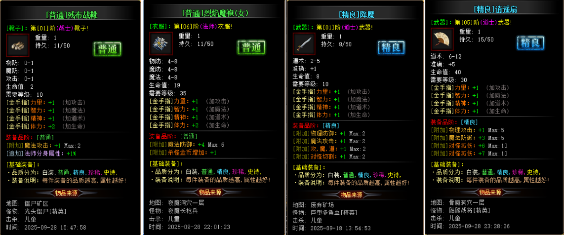 所有装备可打、所有怪物可爆、长期稳定 装备随机鉴定,金手指极限属性,地图隐藏剧情,高达上百种专属 游戏所有爆率全开,所有物品均可掉落,散人好混 隐藏地图剧情,BUFF装备鉴定,神器,专属应有尽有,等你来探索! (散人好混不是空话)→ (你没玩过的特色复古)→ (所有全爆不是忽悠)